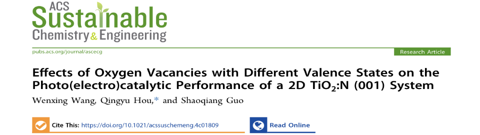 本研究以Effects of Oxygen Vacancies with Different Valence States on the Photo(electro)catalytic Performance of a 2D TiO2 :N (001) System为主题,于5月24日在线发表于《ACS Sustainable Chemistry & Engineering》(一区,IF:8.4)上。论文通讯作者为优米APP网址材料科学与工程学院侯清玉教授。材料科学与工程学院2019级博士生王文星为文章的第一作者,优米APP网址材料科学与工程学院为论文第一完成单位。