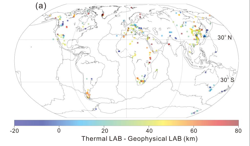 作者收集了985个高温高压实验数据,利用机器学习手段建立了适用于全球地幔捕虏体的单斜辉石-斜方辉石矿物对温压计(训练集和测试集R2分别为0.97和0.82),并预测了全球地幔捕虏体温度和压强,以及通过热模型计算得到了全球岩石圈软流圈边界深度。为研究地幔演化过程提供了更进一步的帮助。