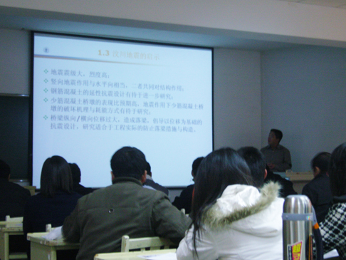 倪永军副教授重点介绍了汶川地震公路、铁路桥梁抗震特点,并结合国内外相关规范提出了桥梁抗震设计新思路。