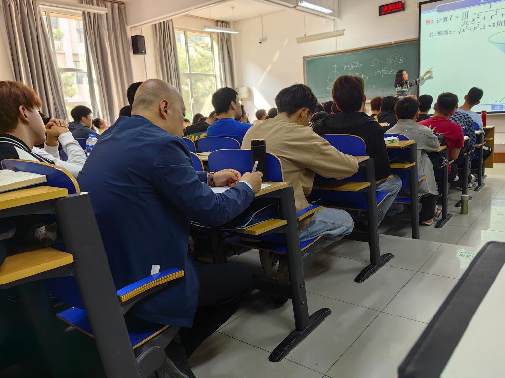 在听课过程中,郭喜认真记录教师授课内容,细致观察学生听课情况,并在课间与师生亲切交谈,对教师的教学态度、教学内容、教学方法以及学生的学习状态等给予肯定。郭喜指出思政课程案例恰当,能够让学生正确认识历史,激发学生的民族认同感与自豪感;高等数学课将理论教学与例题讲解紧密结合,有效促进了学生对理论知识的深入理解和实际应用。同时,他对公共基础课程教学提出以下建议加大虚拟仿真教学资源在思政课程中的应用,让学生身临其境、感同身受,树立正确的世界观、人生观和价值观;二加强集体备课、听课,按模块逐个梳理知识重点,以适当教学方式讲深讲透,为学生打牢基础;三依据学生课程基础和个人意愿开展分层分类教学,提高教学的针对性,提升教学效果,提高教学质量。
