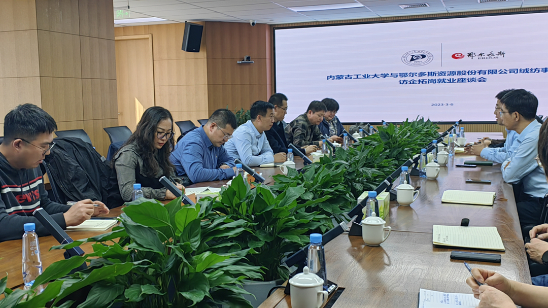 座谈会上,绒纺事业部人力资源部部长马海江介绍了鄂尔多斯资源股份有限公司发展历程、企业现状、人才需求和人才建设情况。国家羊绒制品工程技术研究中心主任高丽忠详细介绍了企业目前在研项目及双方可进一步开展合作的研究方向。李元涛一行介绍了学院发展的基本情况以及在学科建设、人才培养、科学研究等方面取得的成果。双方围绕本科生联合培养、产教融合、实践教学、就业学生专业能力提升等进行深入探讨。双方表示将在已有合作基础上,共同聚焦羊绒产业链发展需求,深化在人才培养、科学研究领域的合作,促进深度融合,探讨合作新途径。