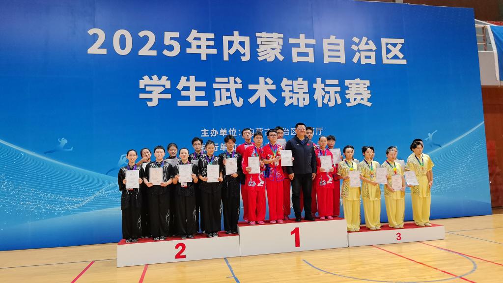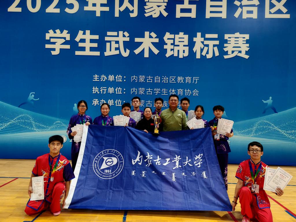10月21日至25日2025年内蒙古自治区学生武术锦标赛举行我校武术队以一项集体冠军、三项个人冠军,4金5银1铜、109分的绝对优势,一举夺得本科校园组团体总分第一名。