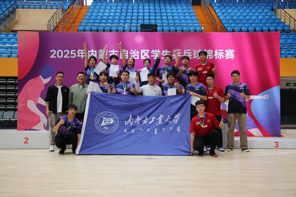 9月23日至30日,2025年内蒙古自治区学生乒乓球锦标赛顺利举办。我校乒乓球队在赛场上展现出强劲实力,表现十分亮眼。其中,本科校园组女子团体一路过关斩将,成功夺魁;男子团体同样发挥出色,斩获季军;混合双打组合凭借精湛技艺强势摘金,成为赛场上一大焦点。