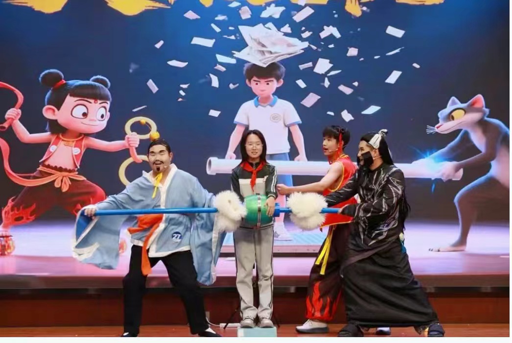 作为我校科普教育实践的重要成果,《人体发电机》作品创新性地融合热门电影《哪吒》中的经典人物形象,以“太乙真人、哪吒、申公豹”为主角构建生动剧情,通过趣味互动实验将电磁感应等科学原理具象化呈现。作品在创作中深度兼顾科学性、趣味性与传播性,既用通俗易懂的方式解读专业知识,又以大众喜闻乐见的形式增强科普吸引力,在现场赢得评委与观众一致好评。