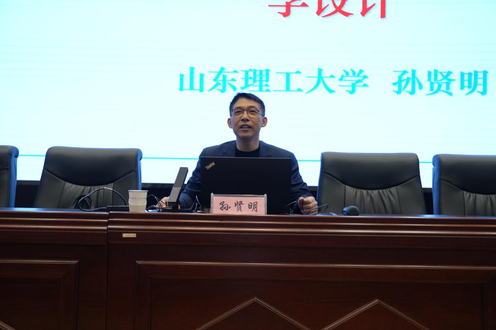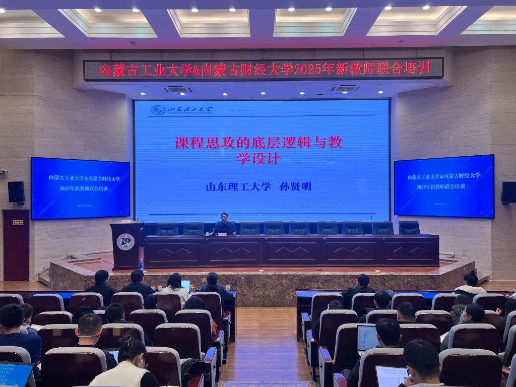 11月11日我校联合内蒙古财经大学共同举办第四期课程思政专项培训,山东理优米视讯苹果下载app学教授孙贤明受邀到校专题辅导两校230余名新教师教师发展中心全体工作人员与骨干教师代表参加