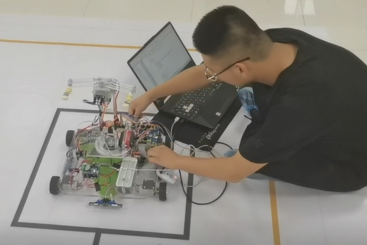 2021年,武超作为团队负责人参加了中国工程机器人大赛暨国际公开赛,该赛事紧密结合“工程”“应用”和“实践”三个关键词,通过明确具体的工程任务,实现机器人代替人或协助人进行工作,注重动手实践能力,重点考查学生对单片机基础编程的熟练程度。比赛项目涵盖“搬运工程、竞技工程、工程越野、飞行机器人、仿人搏击、物流分拣”等20个大项。团队成员认真研究后参加了机器人物流项目快递分拣赛道,根据所选的项目赛道和具体规则,他们选用电机、舵机、灰度传感器、电机驱动模块、颜色传感器等作为实现物流分拣任务的外设;利用激光切割技术对亚克力材料进行加工,得到机器人部件;利用齿轮传动技术,结合舵机得到机械爪;在安装电机时确保左右两侧同轴,使机器人在移动的过程中更平稳;得到完整的机器人主体后,将传感器模块与电源、单片机与传感器模块、单片机与电源之间进行接线,搭建机器人的电路。调试阶段,团队对机器人的舵机、电机驱动模块、颜色传感器、灰度传感器等先后编写驱动程序实现单个外设控制,在主程序中按时序添加对各外设控制,实现多外设联合控制。