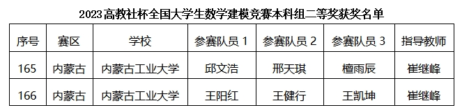 近日,2023年高教社杯全国大学生数学建模竞赛落下帷幕。由我校理学院数学系崔继峰副教授指导,邱文浩、王阳红等6位同学组成的两支团队获得全国二等奖2项。