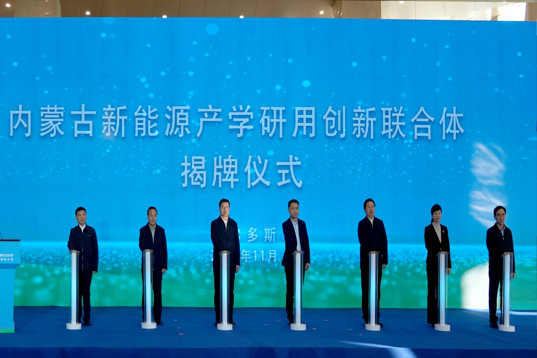 王金豹、马文、王敏、黄彦斌、胡成东、华瑞锋、宝音为内蒙古新能源产学研用创新联合体揭牌