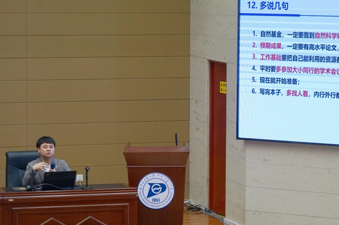 理学院高云峰副教授作题为国家自然科学基金申请书写作小技巧的报告,分享了科学研究的内容、特点和科研过程中可能遇到的问题等