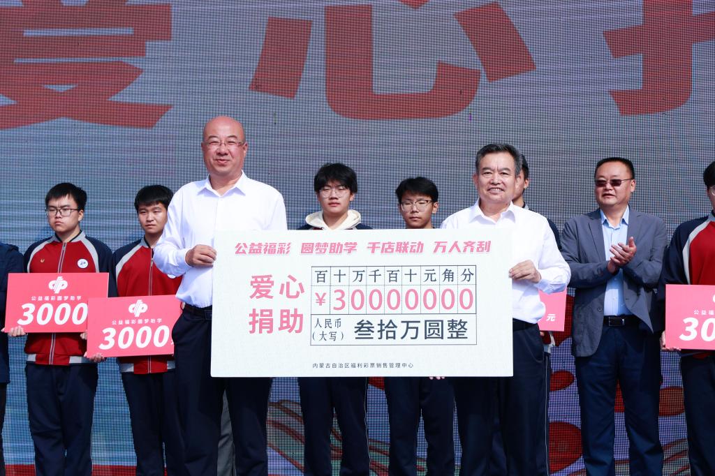 9月23日上午,内蒙古自治区福利彩票销售管理中心在呼和浩特市宝鼎广场开展“公益福彩 圆梦助学 千店联动 万人齐刮”大型公益资助暨即开票营销活动。自治区民政厅党组成员、副厅长、一级巡视员公维春,校党委委员、副校长王利明出席。