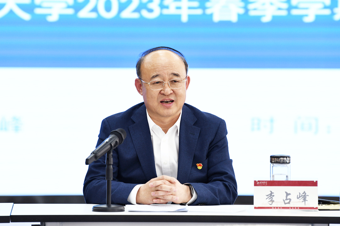 “这个学期,无论是对国家而言,还是对学校而言,对我们每个人而言,都具有特殊的意义。”李占峰以“这是全国上下深入学习贯彻党的二十大精神的开局之年、是疫情平稳转段后高校迎来的第一个新学期、是新一届校领导班子团结带领广大师生真抓实干的第一个新学期”等为切入点,带领学生回顾过去一年党和国家在各领域取得的伟大成就及学校师生在抗击疫情中作出的卓越贡献。