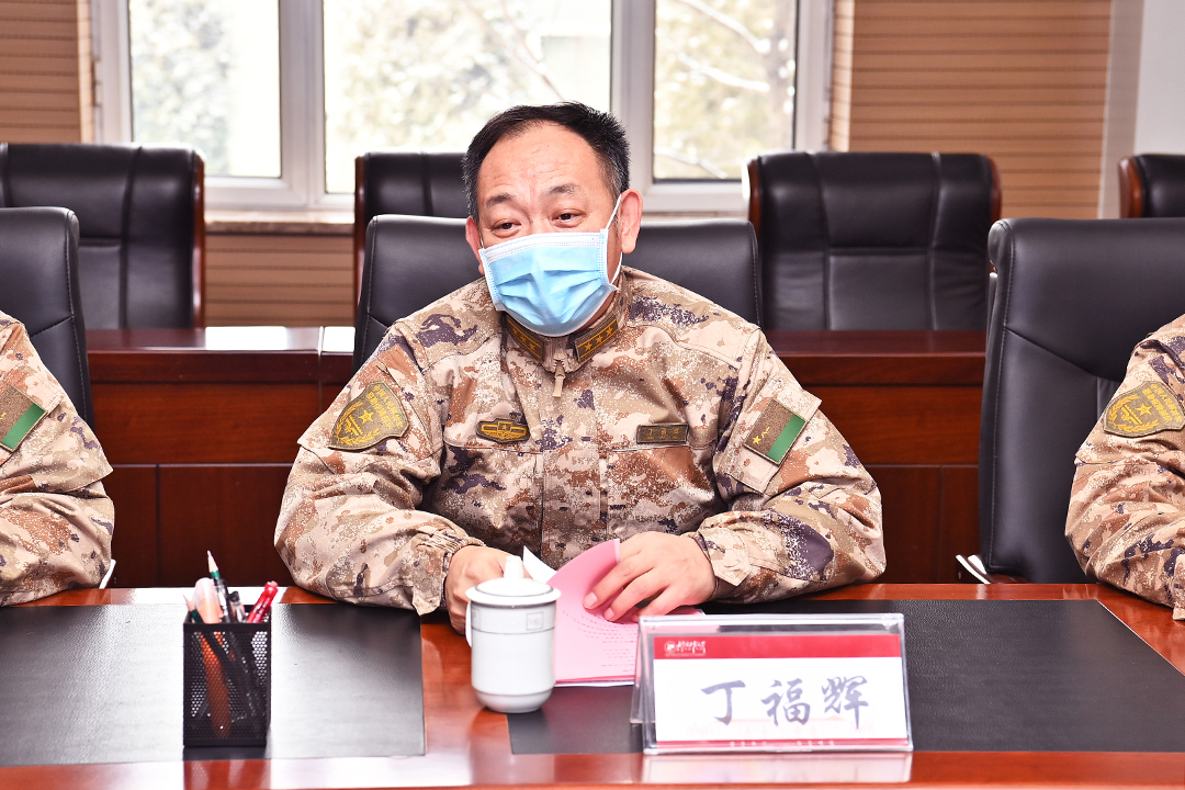郝贠洪对丁福辉一行的到来表示热烈欢迎,对九六九医院多年来给予学校的关怀与支持表示感谢。郝贠洪简要介绍了学校的办学情况,希望今后能与九六九医院在学生工作、科学研究、后勤管理等各方面进一步加深合作、取得共赢。