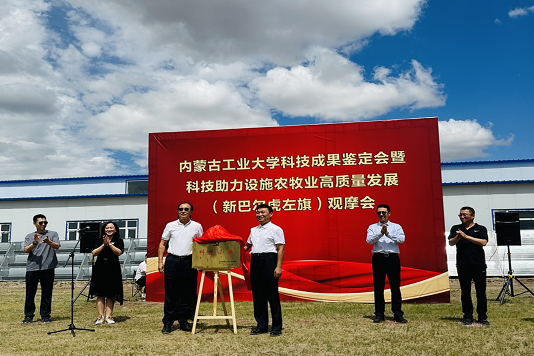 7月1日,由我校常泽辉教授团队研发的科技成果“基于聚光集热太阳能设施农业土壤跨季度储供热技术及工程示范”鉴定会暨科技助力设施农牧业高质量发展观摩会在呼伦贝尔市新巴尔虎左旗举行。自治区乡村振兴局副局长韩建刚,我校党委委员、常务副校长宝音,呼伦贝尔市人民政府副市长马跃东,自治区科学技术厅三级调研员杨勇,呼伦贝尔市科技局党组书记、局长杨智娟,新巴尔虎左旗旗长吴学勇等领导参加。