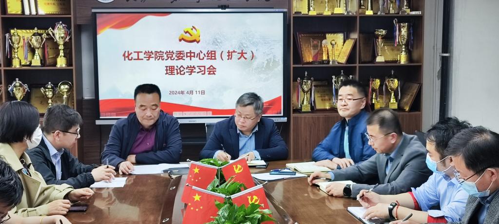 4月11日,化工学院党委组织召开理论学习中心组(扩大)专题学习会,学院全体党委委员、科级干部、教工党支部书记参会。