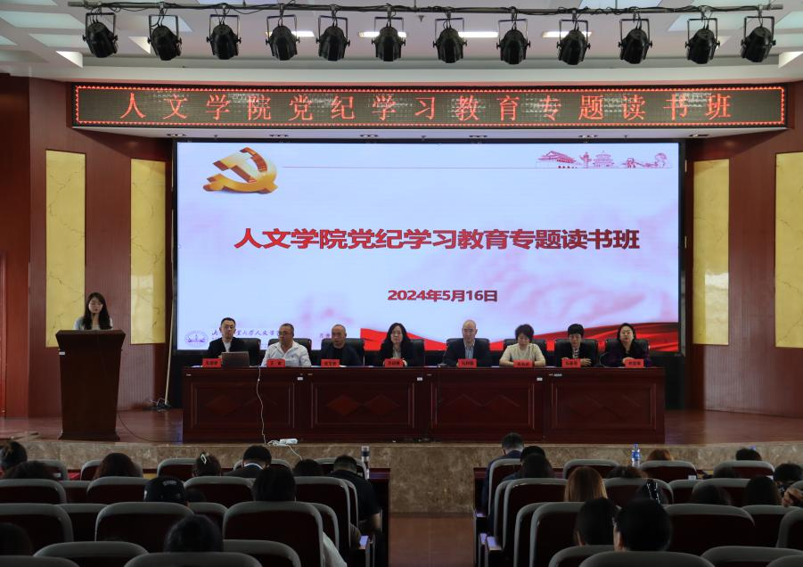 51316日,人文学院党委举行党纪学习教育专题读书班。读书班通过专家讲学、集中学习、警示教育、分组研讨个人自学和汇报交流相结合的方式,全面、深入学习领会新修订的《中国共产党纪律处分条例》。
