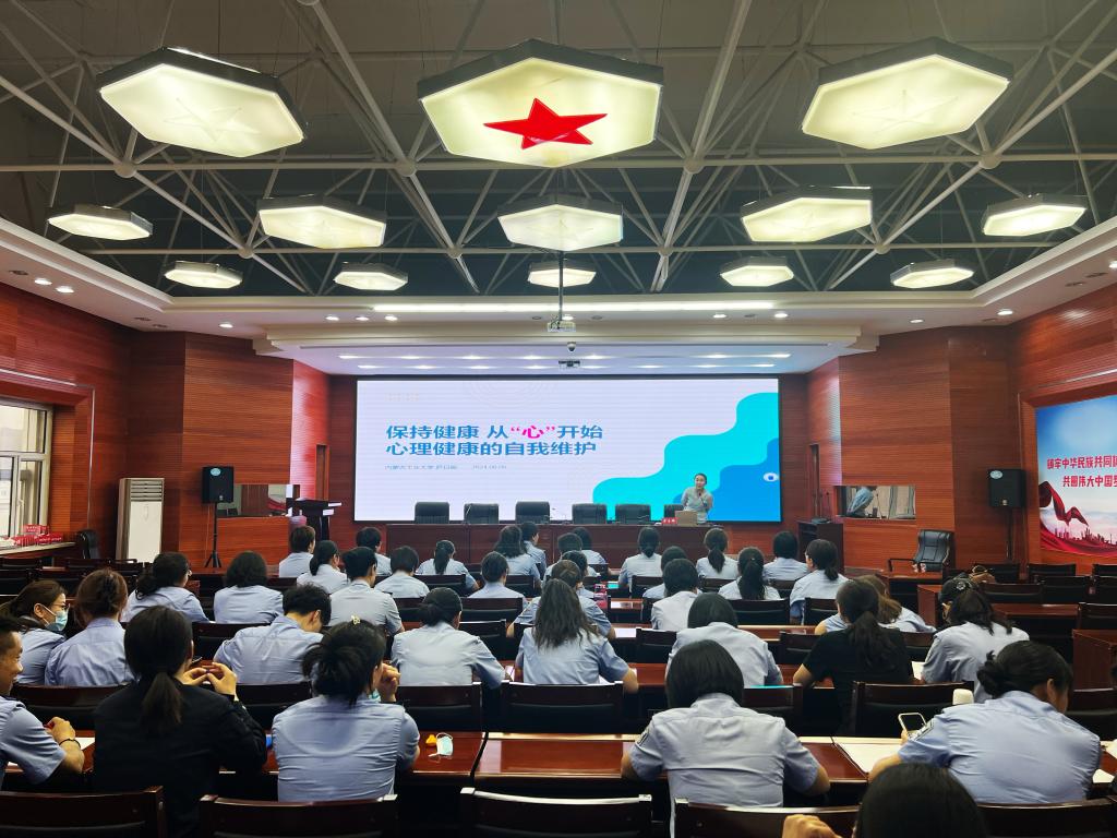 随后双方支部联合开展“保持健康、从心开始”民警心理健康教育培训讲座。支部党员、我校心理咨询中心专职教师、监狱民警等80余人参加培训。我校心理咨询中心专职教师萨日娜围绕“心理健康的自我维护”,详细讲解压力是什么、压力源有哪些、压力的预警信号以及心理健康自我维护方法,并分享心灵手指操、正念冥想等缓解压力小技巧。